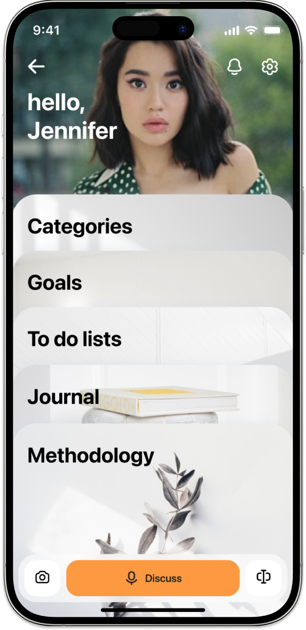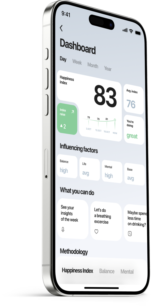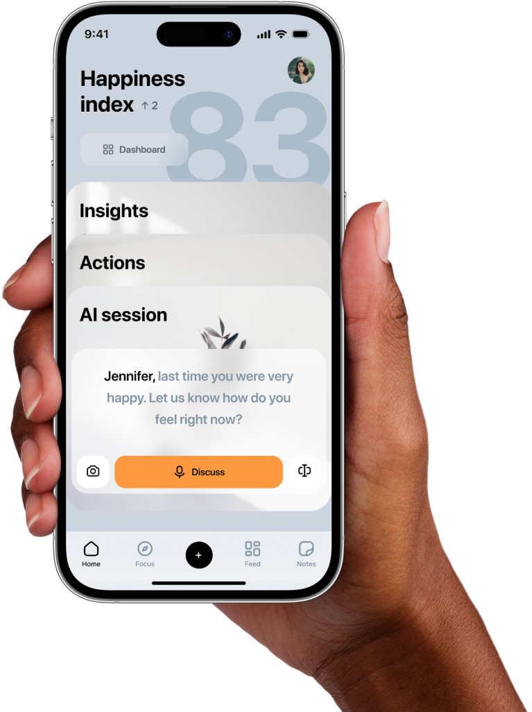 Our personalized AI assistant guides you on your journey toward happiness and personal growth.